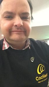 Hoje, Jaime descreve a comunidade de voluntários Cochlear como um espaço cheio de energia e apoio mútuo: