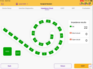 Seu objetivo é fornecer informações objetivas, imediatas e acionáveis, permitindo ao cirurgião monitorar a inserção, confirmar a integridade do dispositivo e apoiar a programação pós-operatória. Essa integração traz fluidez e controle para cada etapa do procedimento.
