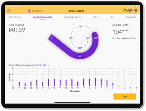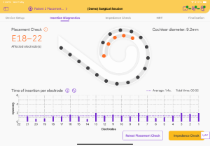- Ajuda o cirurgião a avaliar se a inserção mantém um ritmo lento e constante, associado a menos trauma intracoclear e maior preservação auditiva.